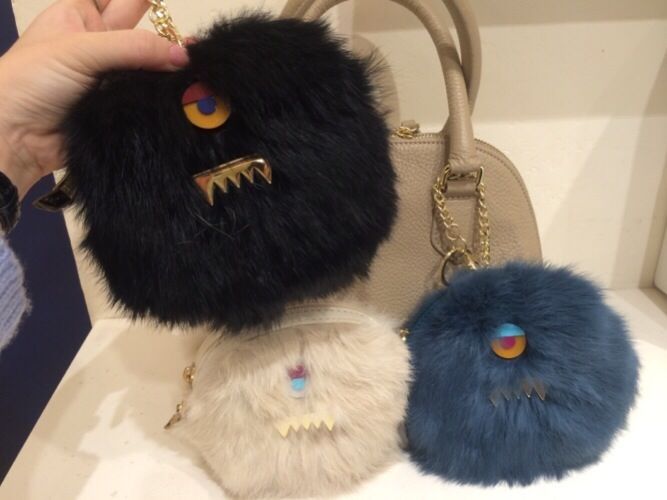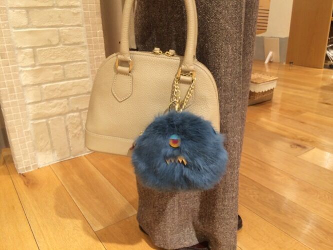 バックには、モンスターのキャッチーなファーポーチをつけてポイントに。