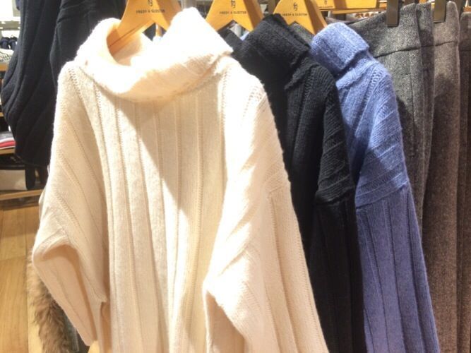 ニットはざっくりとしたワイドリブの素材感が素敵な1枚。