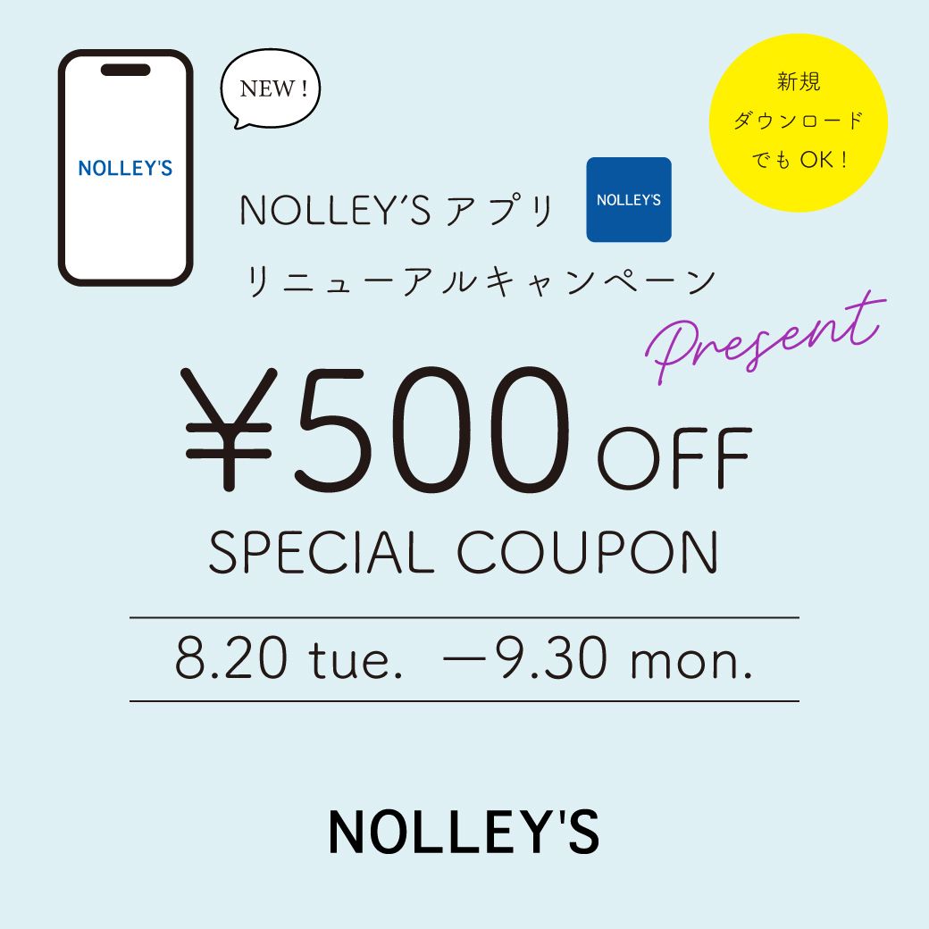 【NOLLEY’S】公式アプリリニューアルキャンペーン!¥500 OFFクーポンプレゼント!