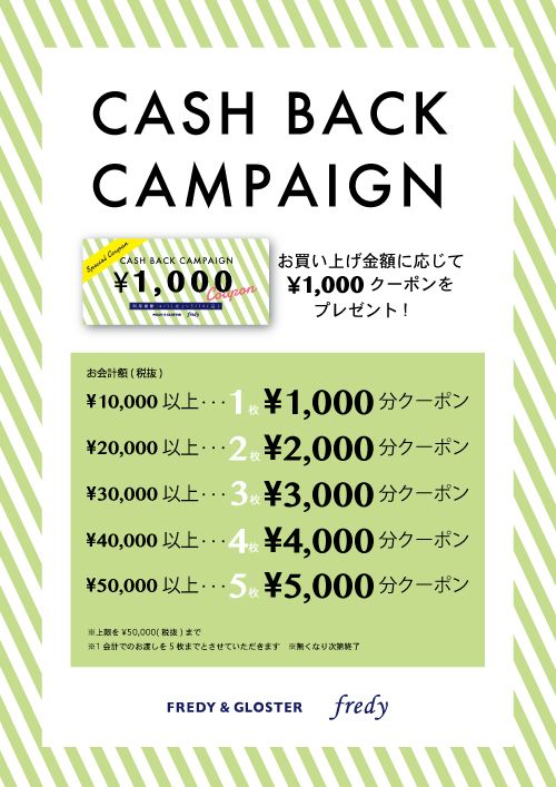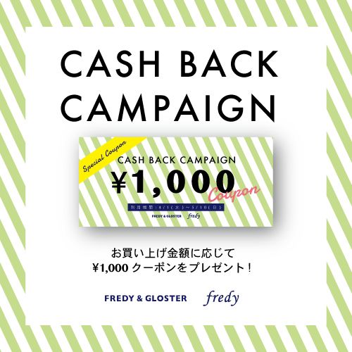 FREDY&GLOSTER / fredyでは、CASH BACK CAMPAIGNを開催いたします。