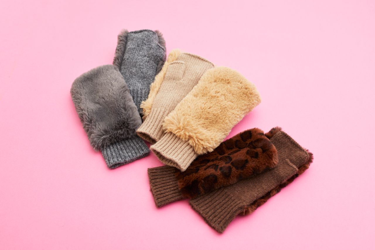 手の甲の上にボリューミィなファーをドッキングしたリッチ感のある仕上がりです。