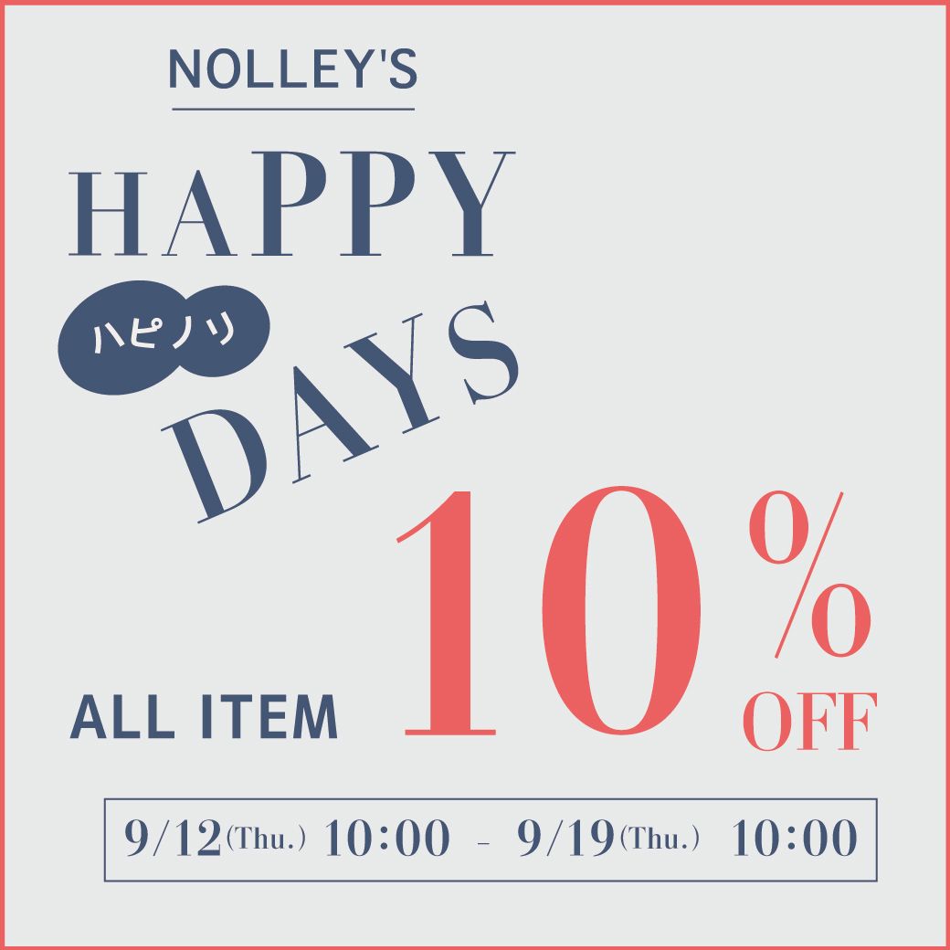 〈ノーリーズアプリ会員〉\ハピノリ/ HAPPY DAYS!10%OFFキャンペーン!を開催いたします。