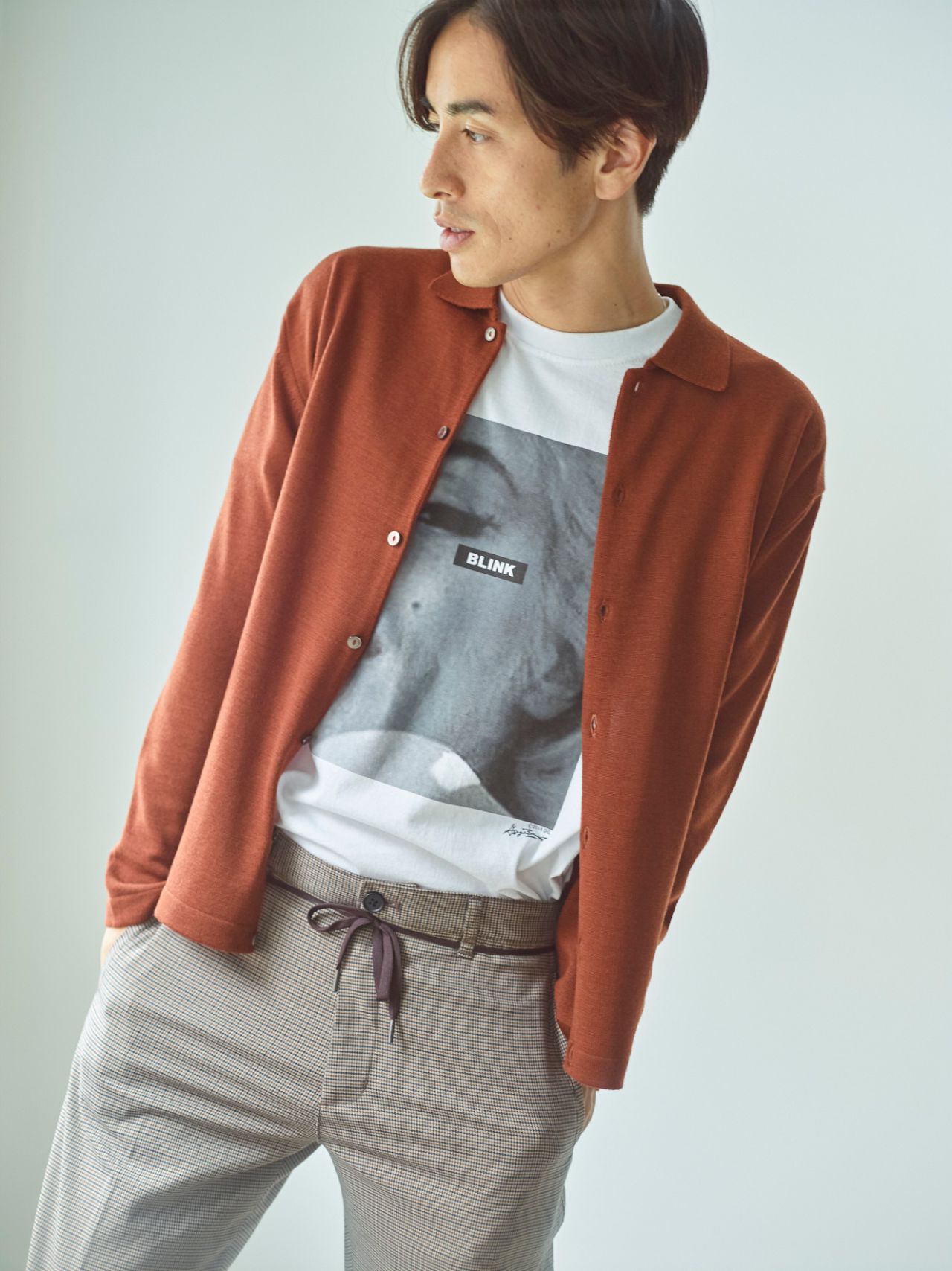秋コーデのインナーとしても重宝する一枚。
