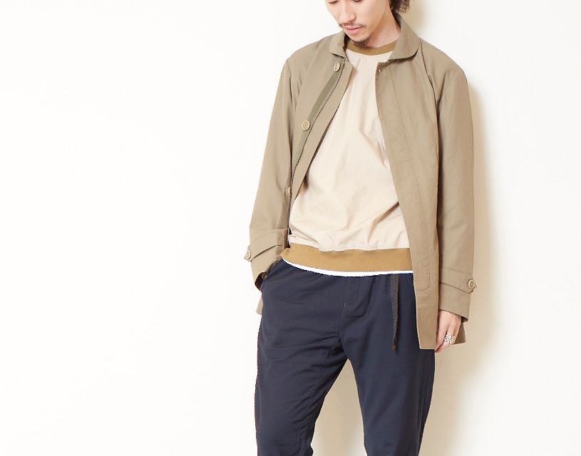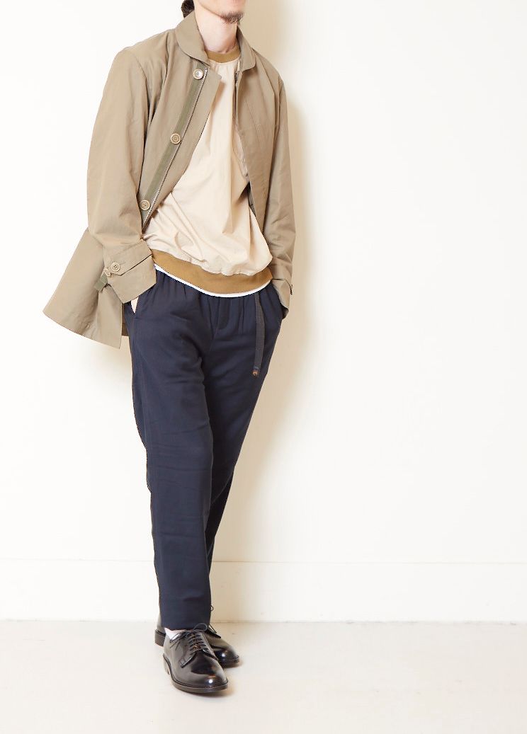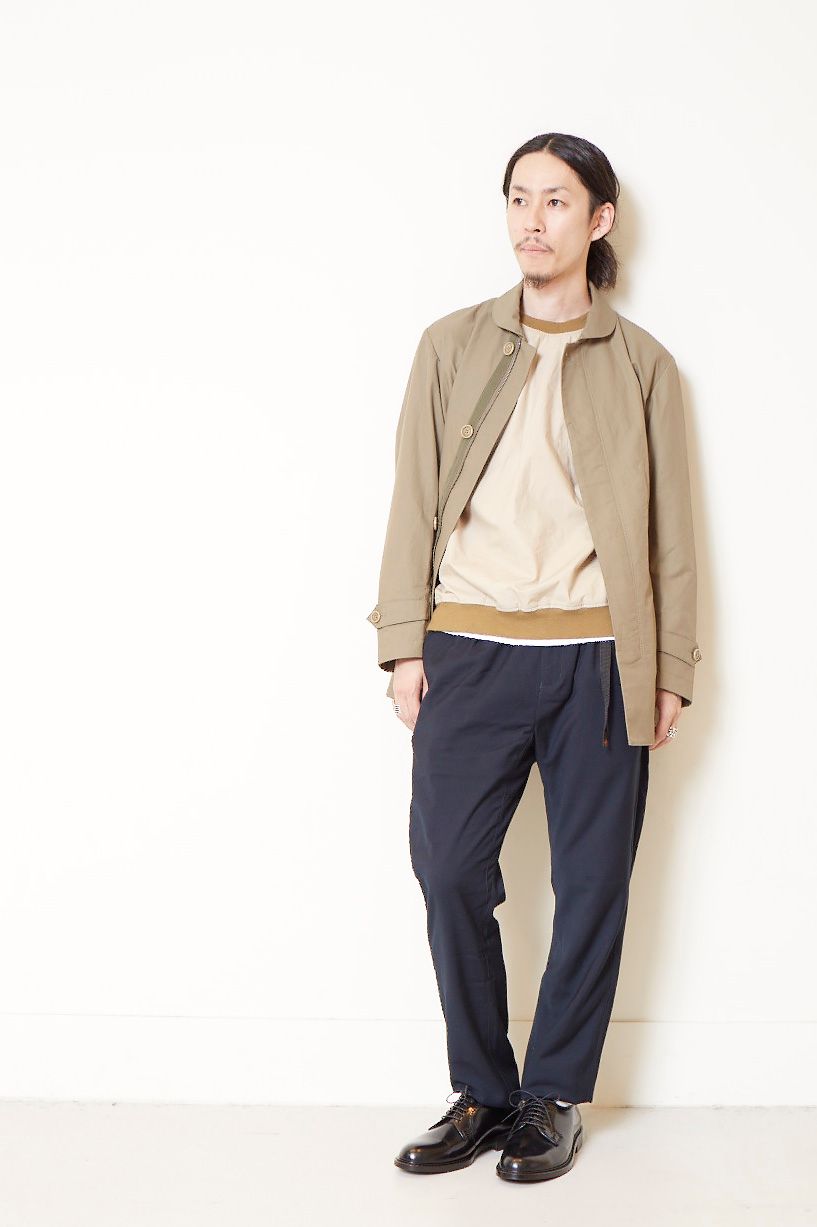 イージーパンツにインナーは軽めの素材のプルオーバーシャツを。