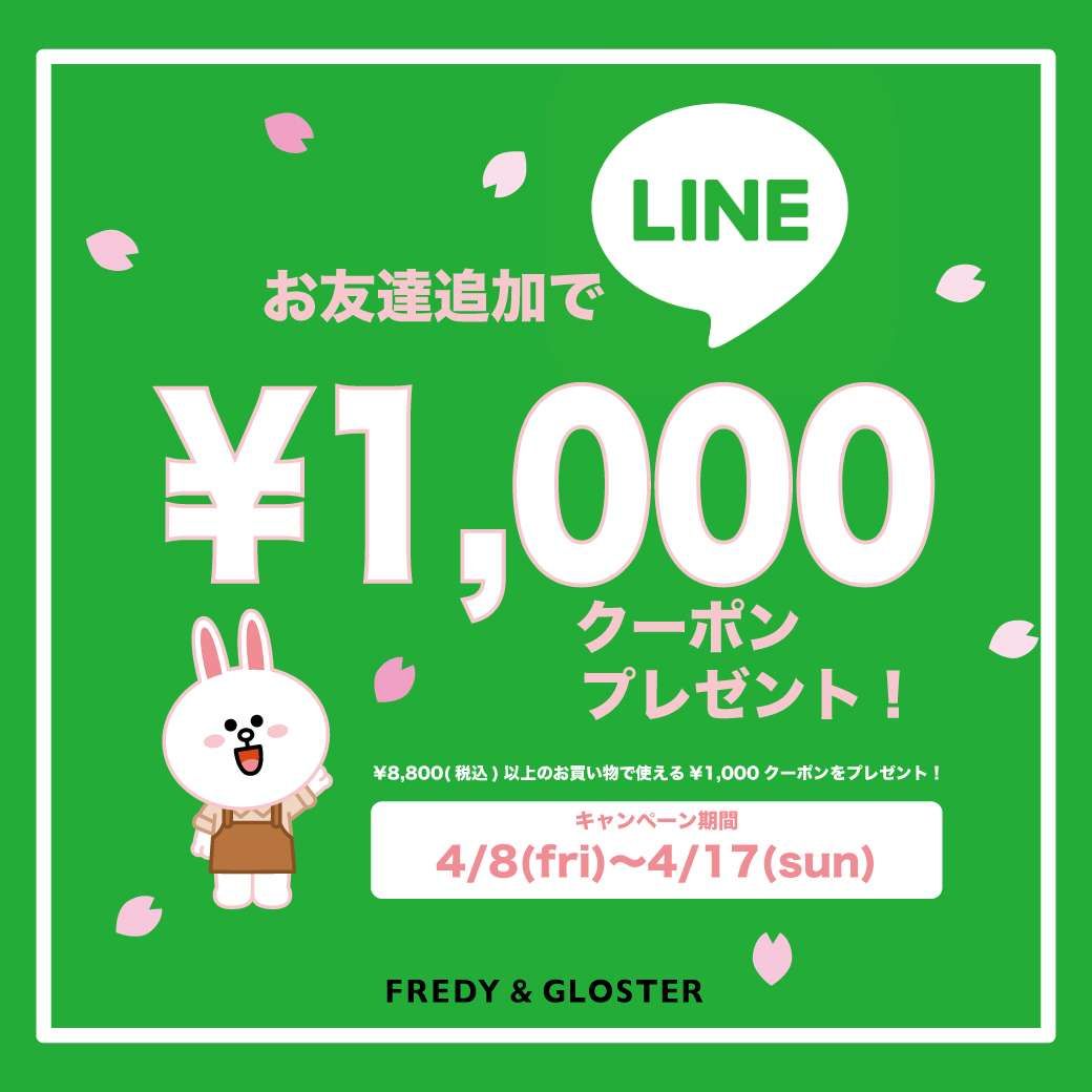 4/8(金)〜17(日)までLINE友だち追加で¥1,000クーポンをプレゼント!