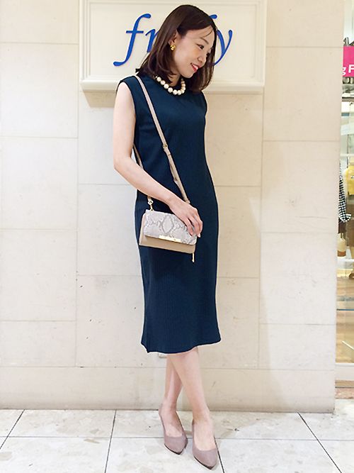 同じワンピースをとことんシンプルに着こなしました。
