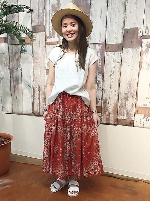 バンダナ柄で今年顔になれるふんわりスカートはホワイトの