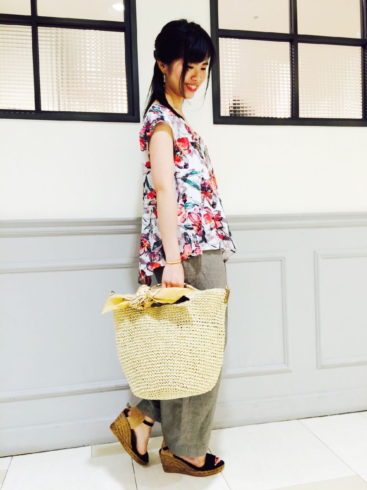 花柄のゆるっとブラウスにあえてワイドパンツを合わせる今年