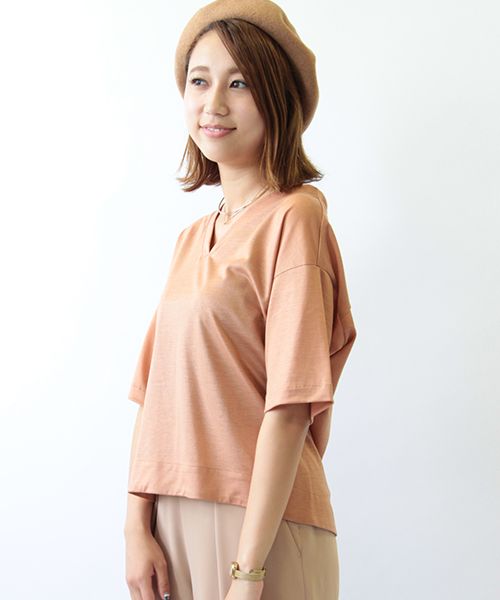トレンドの「衿抜き」スタイルを作れるVネックのカットソーが