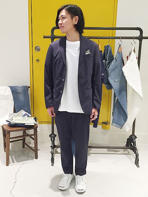 かっちりし過ぎずにTシャツやスニーカーでカジュアルに着こなすのが気分です。