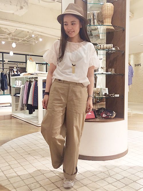 こちらも人気のホワイトボトムのクロップド丈をチョイス。一気にこなれ感が出ますね。