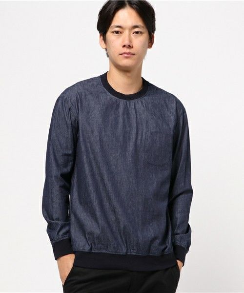 ムラ糸デニムプルオーバーシャツ