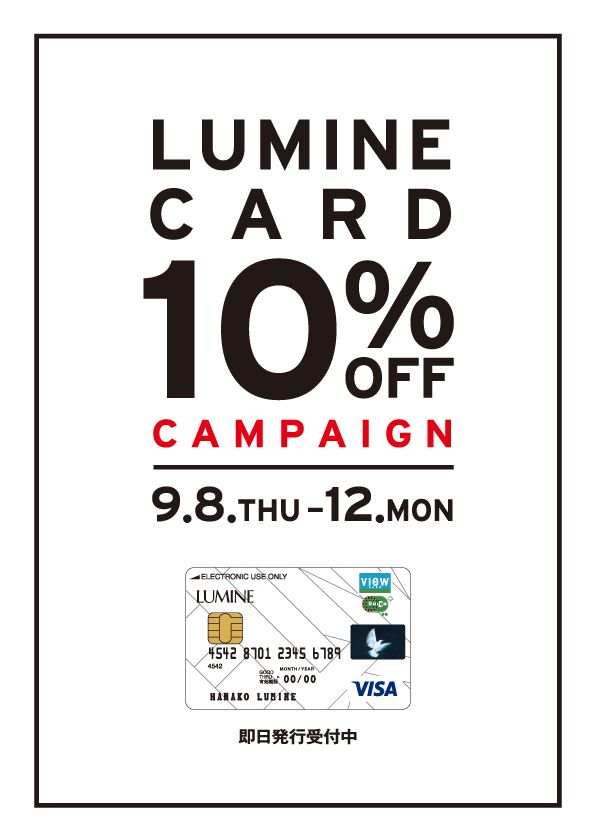 9/8(木)〜9/12(月)まで開催中のルミネカード10%オフキャンペーン。