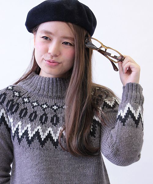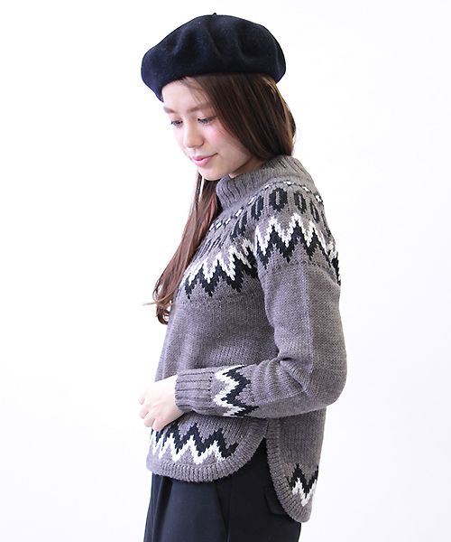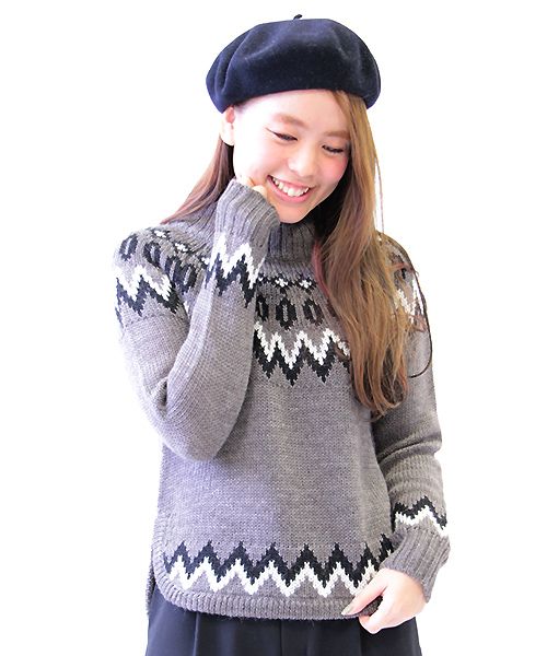 ◆フェアアイル柄ハイネックニット(HW522008) col:オフ、グレー size:38 price:¥11,000+TAX