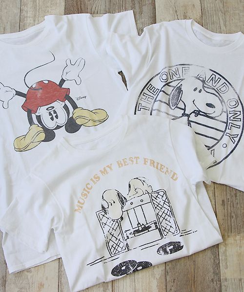 更にプリントや生地に風合いを加える事によりお気に入りの古着Tシャツの様な