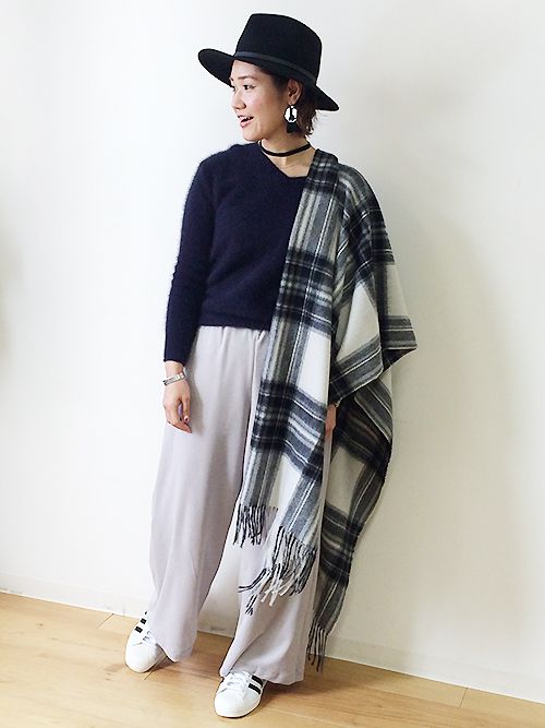 大判ストールを大胆に纏うアレンジも新鮮です。