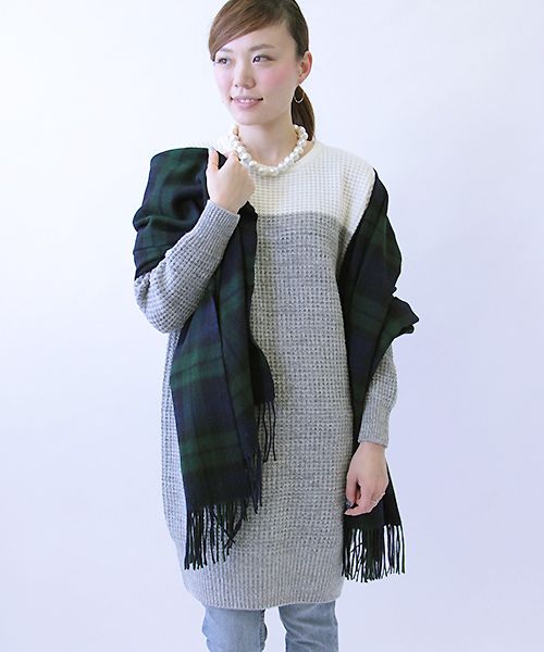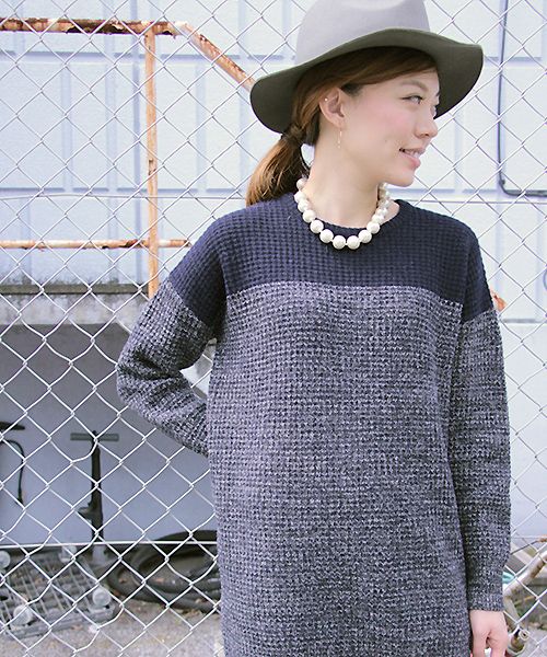 バイカラーニットワンピース(HW522013) col:オフ×グレー、ネイビー×杢ネイビー size:36、38 price:¥11,000+tax