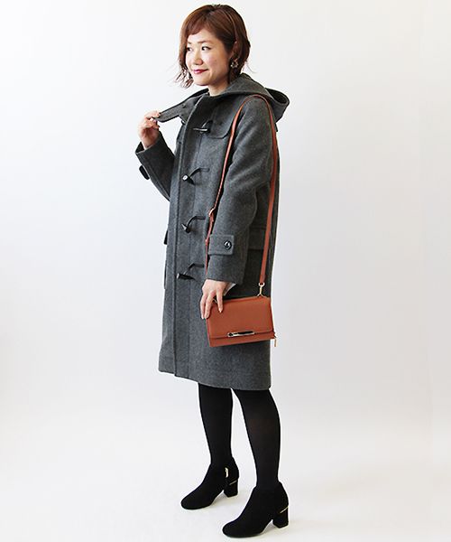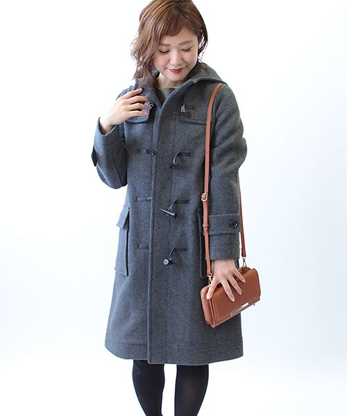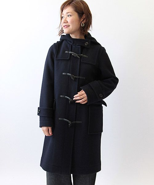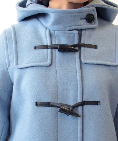 メルトン素材を二枚重ねた保温性のある生地を使用したダッフルコート。