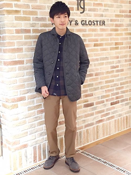 同じくキルティングジャケットをちょっときれいめなイメージで
