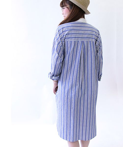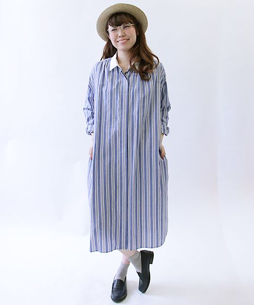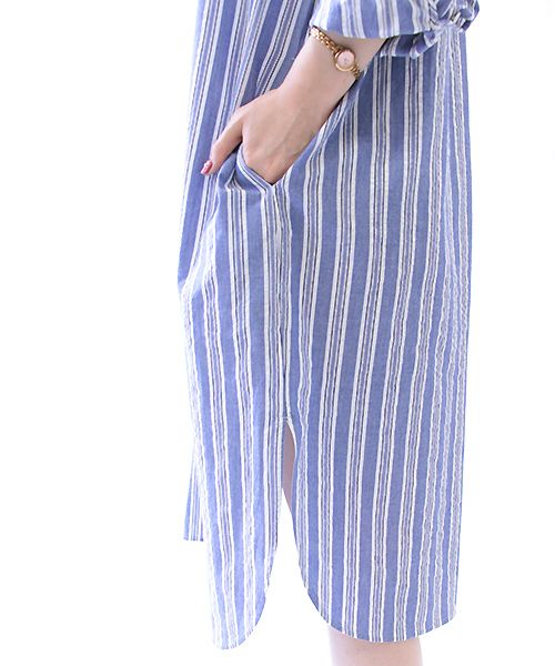 ストライプ脇スリットロングシャツワンピース(HP627021) ¥12,000+TAX