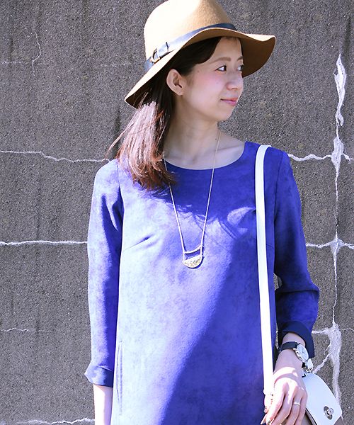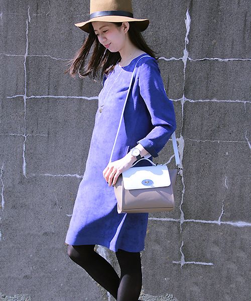 ポリスエード9分袖ワンピース(FW527014) col:ロイヤルブルー、グレイッシュベージュ、サーモンピンク