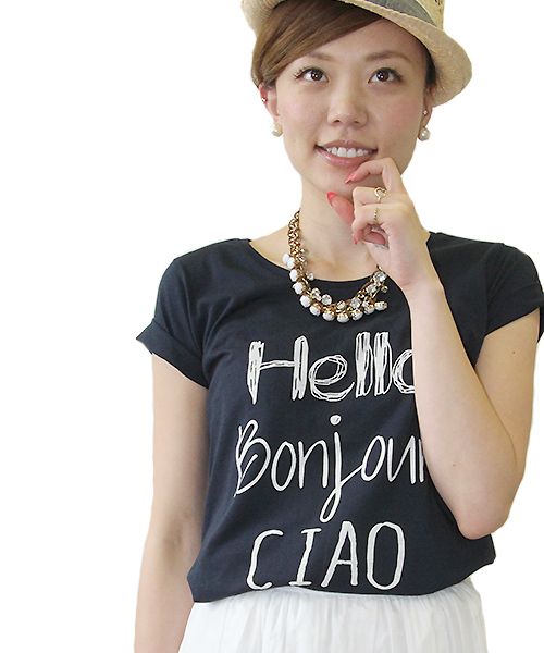 ◆Hello Bonjour Tシャツ(50360123010)  col:ネイビー  price:¥2,300+tax