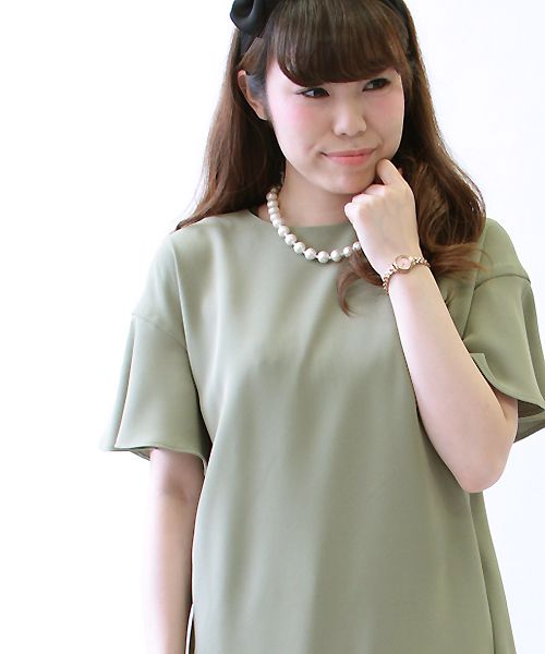 柔らかいオリーブカラーは普段使いからカジュアルなお呼ばれにもお使い頂けます。