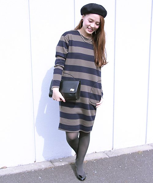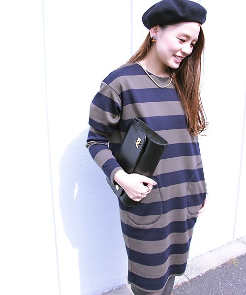 ポンチワンピース(HW527015) col:カーキ、ブラック、カーキ×ネイビー size:36、38 price:¥9,200+TAX