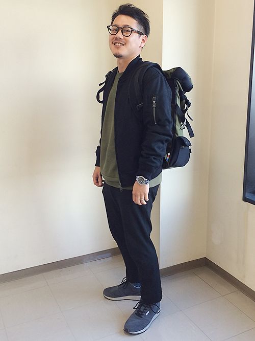 MA-1やボトムもブラック系でまとめつつ、その着丈感で