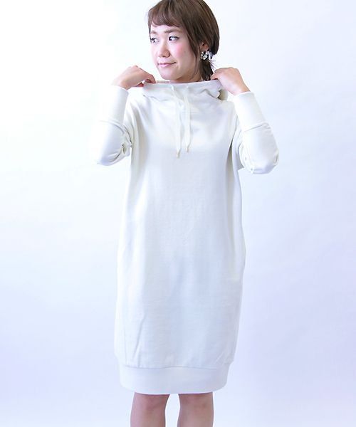 スタンドデザインのフードがユニークなスウェットワンピース。