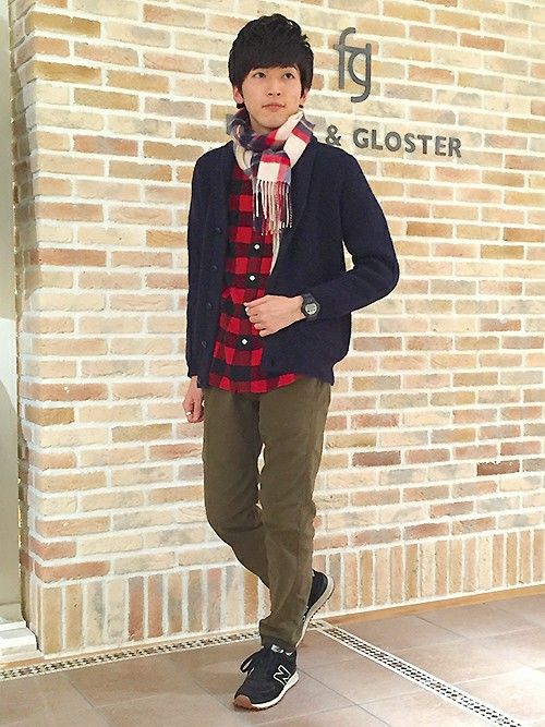 同じチェックシャツを太めパンツとラフに合わせた町田店スタッフ。