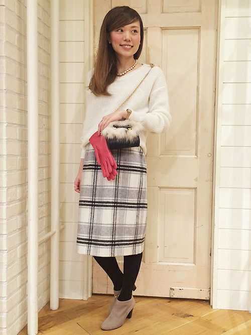 ホワイトカラーのモヘヤニットは女子力アップ間違いなしなアイテム。