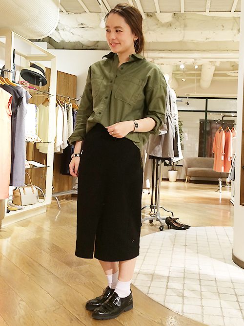 春も大活躍のミリタリーシャツをタイトスカートでクールにまとめてみました。