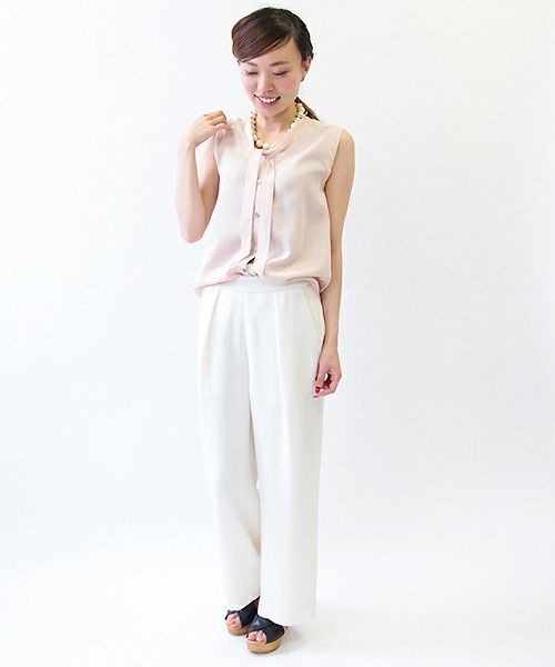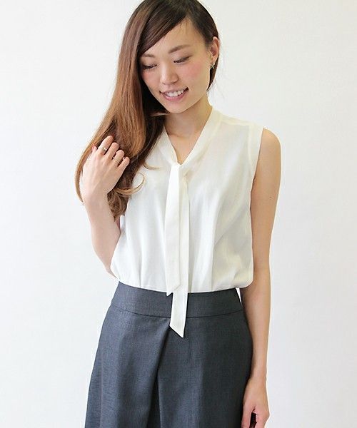 シンプルなボウタイブラウスは夏中大活躍間違いなしなアイテム。
