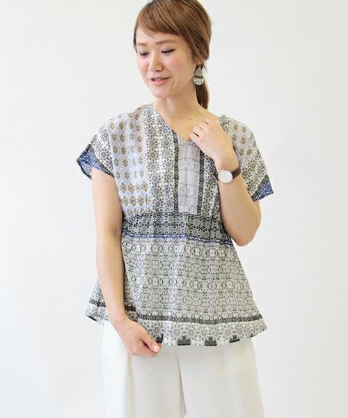 インドプリントの優しい風合いのブラウス。