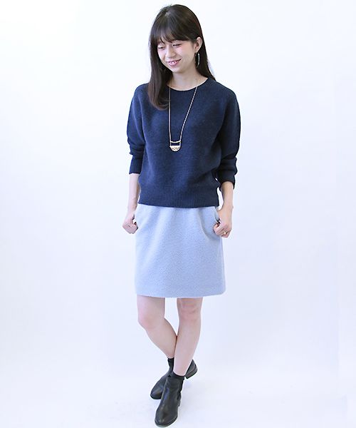 優しいブルーは濃い色のトップスでも薄い色のトップスでもキレイにコーデ出来ますよ。