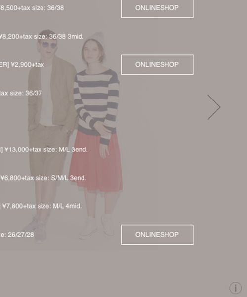 各ビジュアルの下の「iマーク」をクリックすると商品のインフォメーションが見られます!