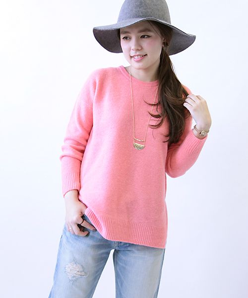 カシミヤ混ニットチュニック(HW522006) col:オフ、ピンク、グレー size:36、38 price:¥9,500+TAX