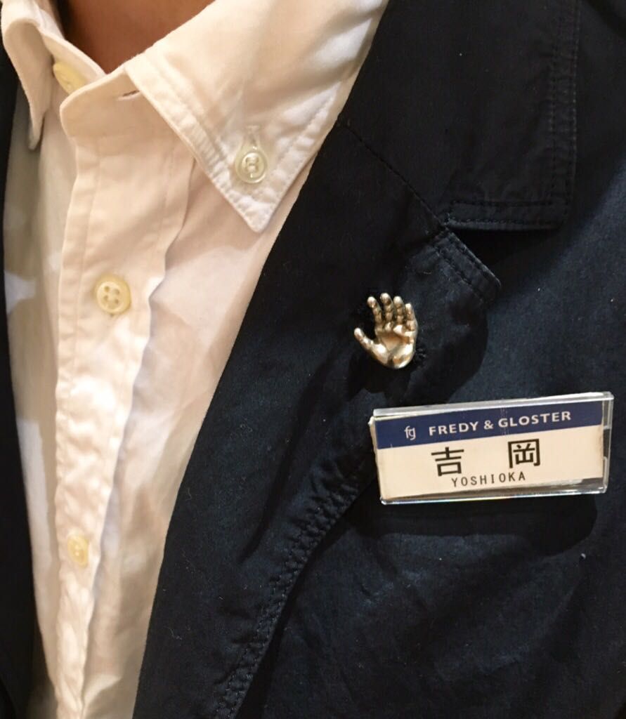 ちなみに小物大好き吉岡はラペルピンなぞ付けて遊んでいるようです。