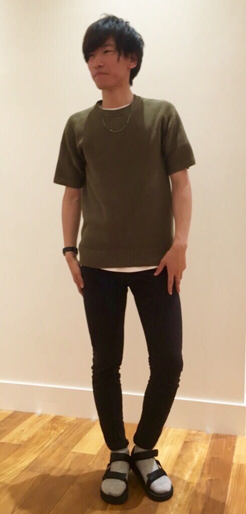 180cm64㎏の佐々木がニットをサイズ2、サンダルをサイズ8で着用しています。