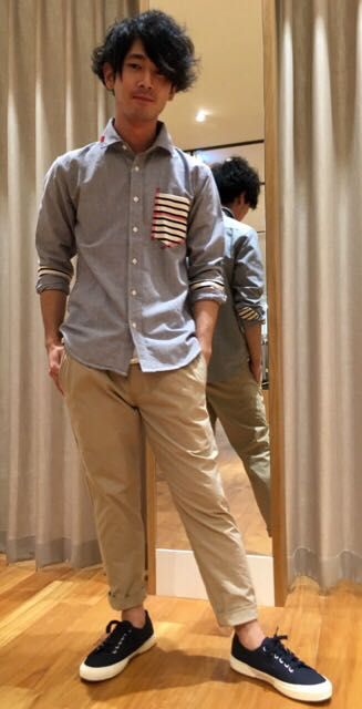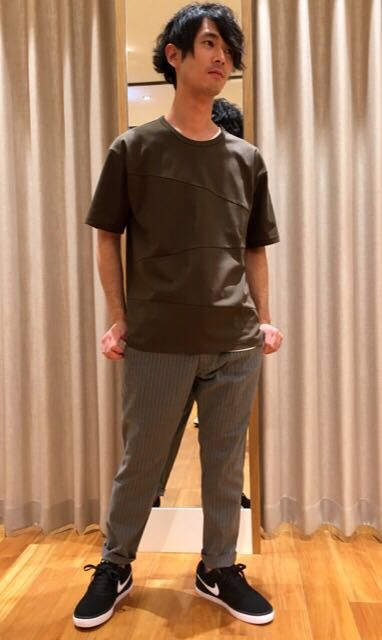 168cm56㎏のスタッフ松本が全てのトップスをMサイズ、パンツをSサイズで着用しております。