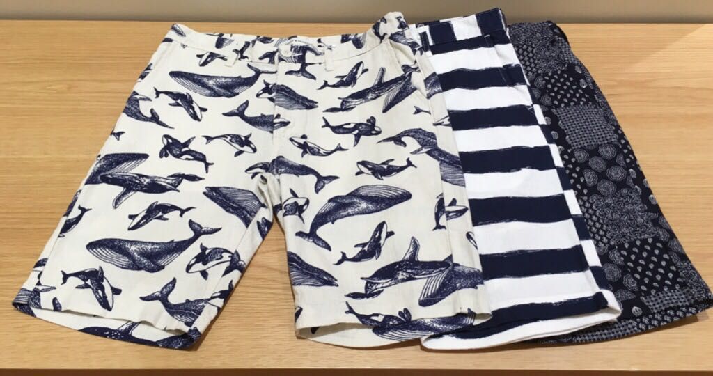 かわいいクジラ柄、爽やかなボーダー柄、男らしいバンダナ柄の総柄3品番!