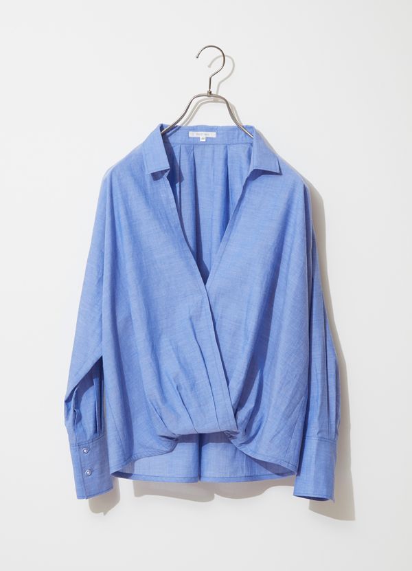 お次は、一度着たら虜になる、カシュクールに見えるプルオーバーシャツ。