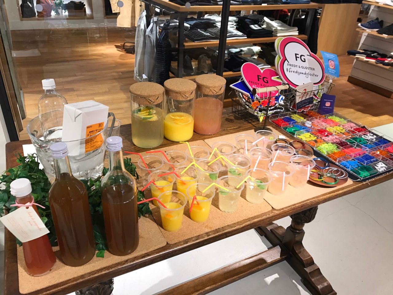 ジンジャーレモンスカッシュ、ピーチソーダ、オーガニックの100%オレンジジュースの、3種をご用意致しました!