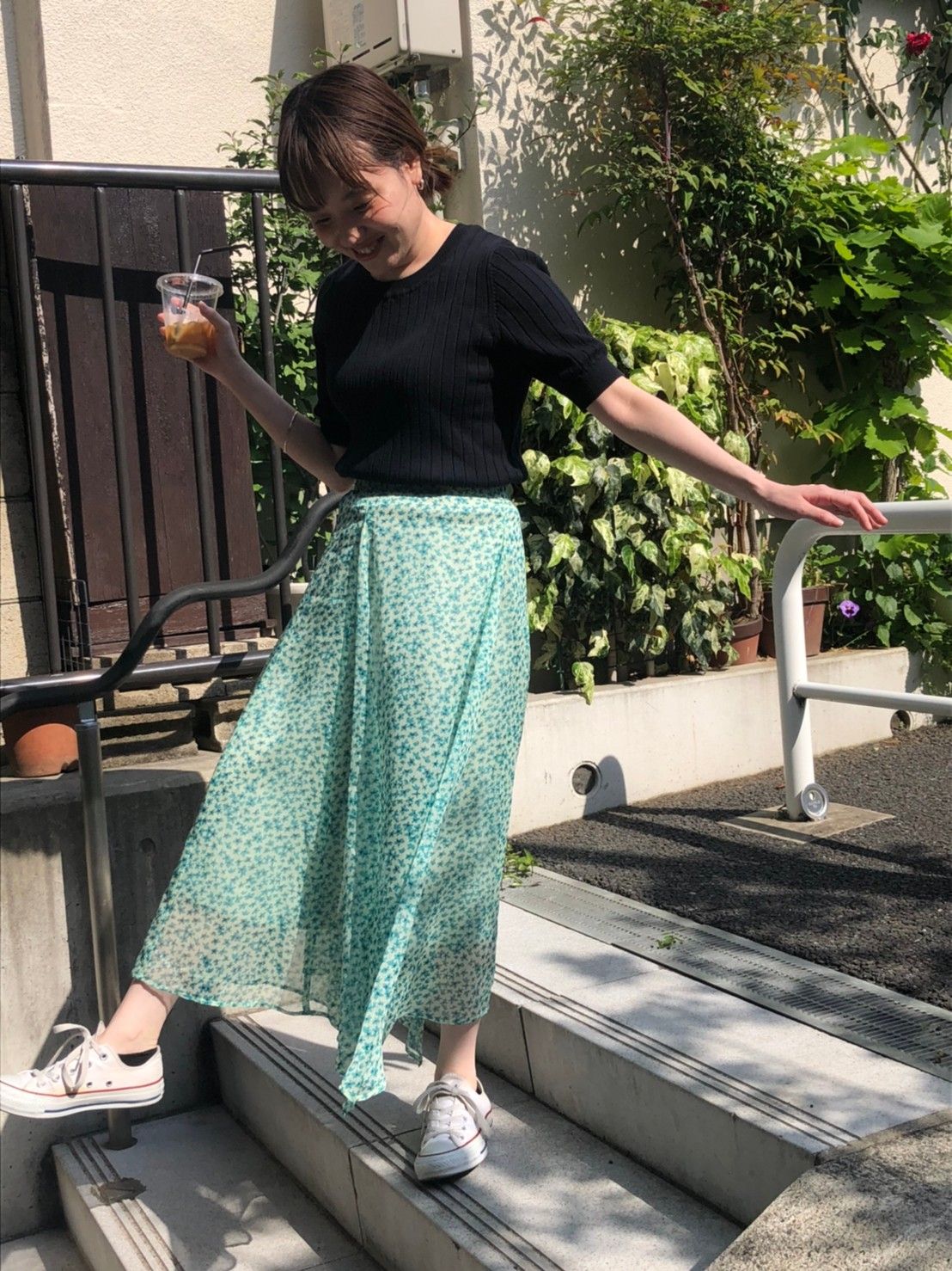 歩く度にふわっと揺れる花柄スカート。