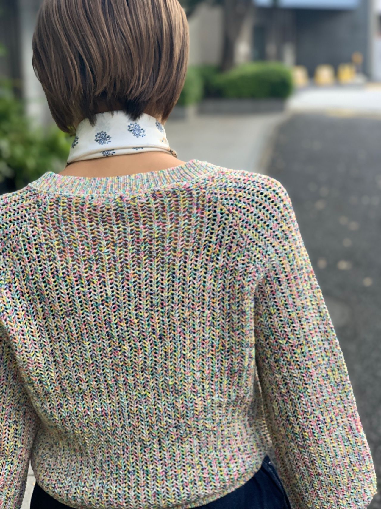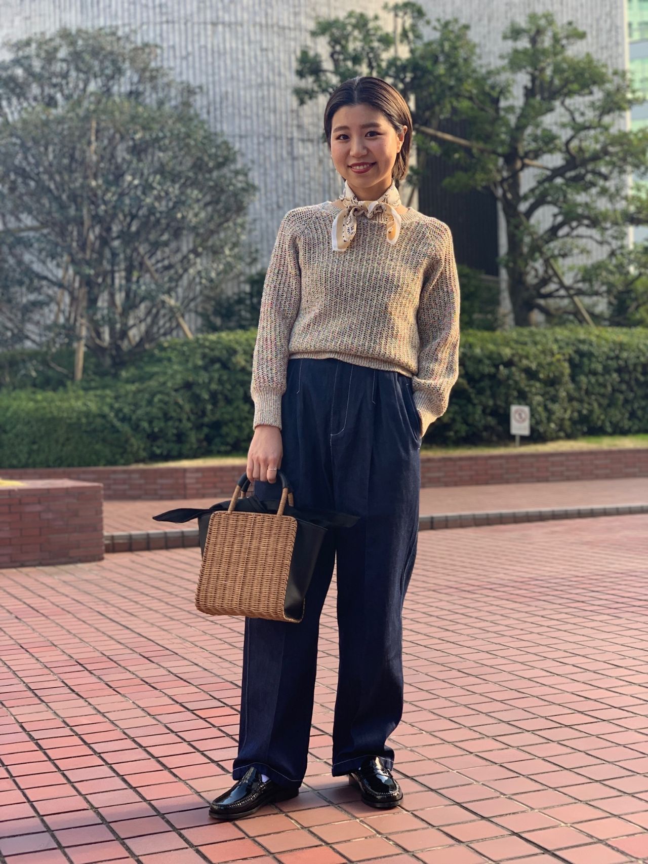 首にちょこんとスカーフを巻いて、ポイントに。