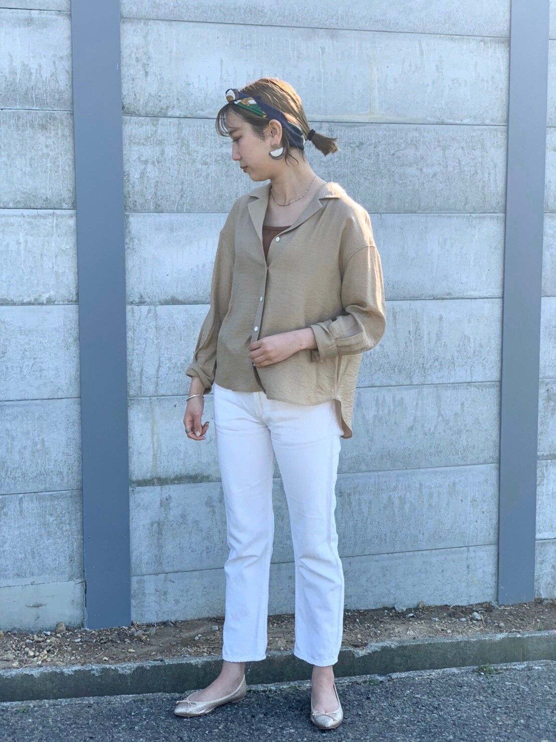 白いパンツで、爽やかな大人のキレイめカジュアルに。