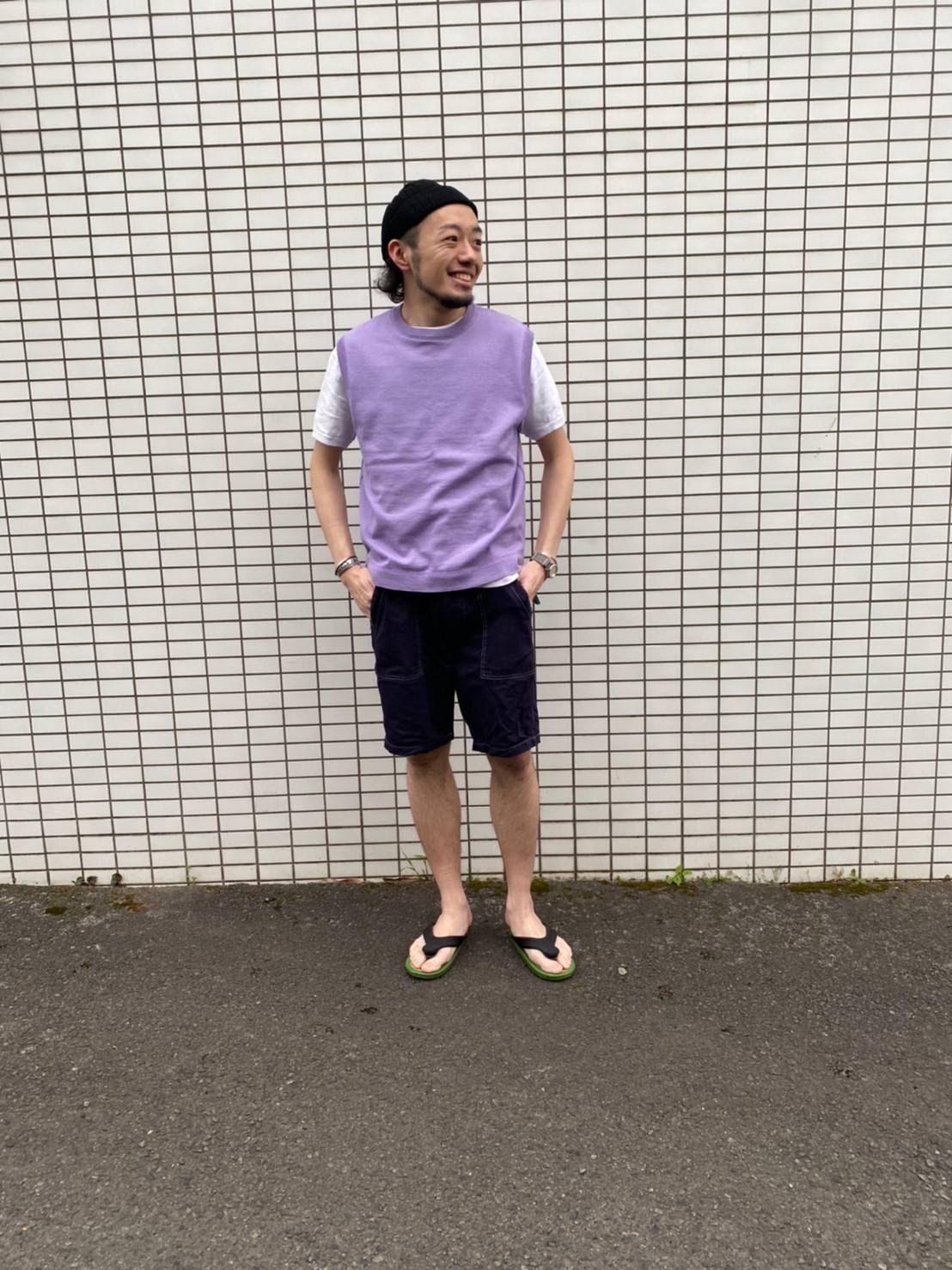 ニットワッチではなくてストローハットにしてもより夏らしくていいかと思います!