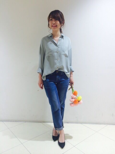 テロっとした素材のシャツは、上品さを残しつつも、程よい抜け感が出るのでカジュアルなパンツとも相性よく着ていただけます*