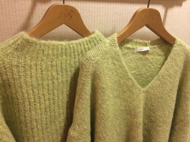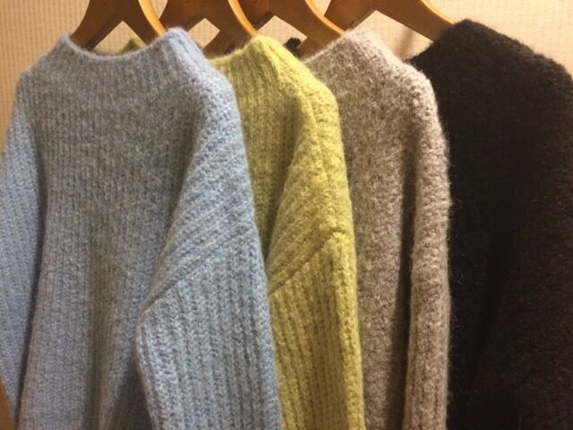 ざっくりとした編地ですが、毛足が長くふわっとしているので透け感などは一切なく、今の時期でしたらインナーはキャミソールやタンクトップでも暖かくお召し頂けます!